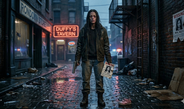 LOGLINE: When her daughter vanishes overnight, a drug-addicted single mother claws her way through the underbelly of a corrupt town to unravel a tangled web of abuse, trafficking, and betrayal -- leaving only a trail of blood and reckoning in her wake.